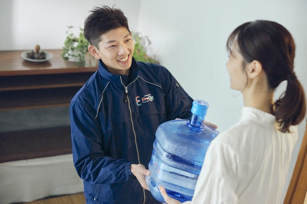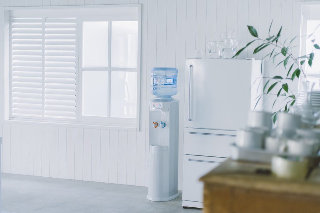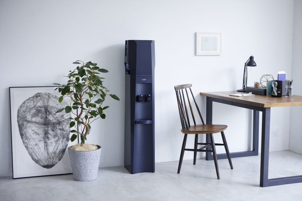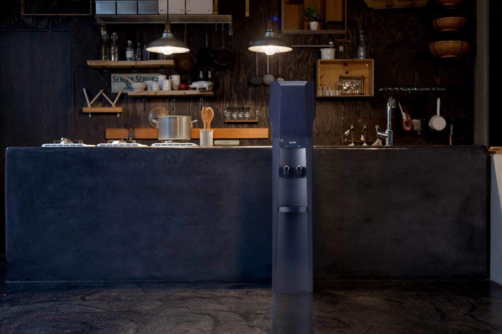 機能性だけではなく、デザイン性にもこだわったスリムなウォーターサーバー。カラーはクールホワイト、ブルーブラックの2色展開。インテリアになじみやすいようボトルカバーをつけることが可能です。