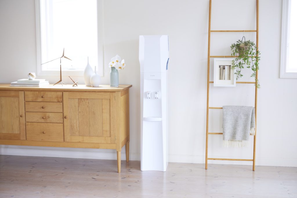 下置き(床置き)タイプで、ご家庭のリビングやキッチンにも設置できるサイズです。お子様のいるご家庭や、毎日の水分補給を手軽に求められる皆様にも、気軽にご利用いただけます。チャイルドロック付き。